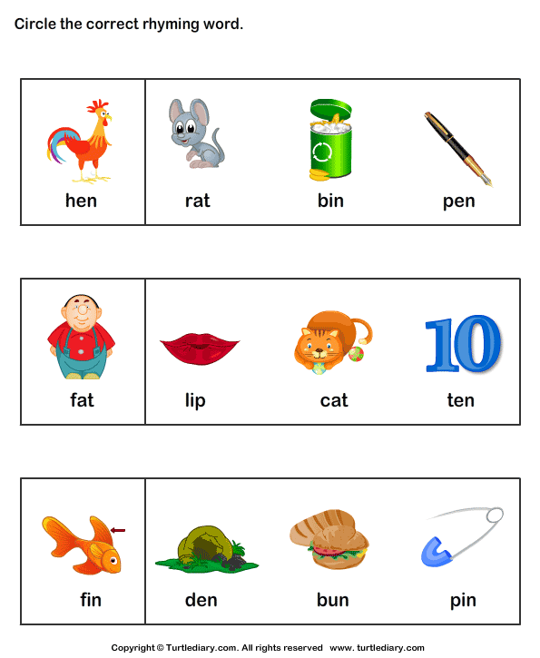 Identify Words That Rhyme TurtleDiary