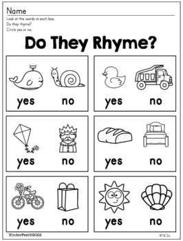 Rhyme Time Rhyming Worksheets For Kindergarten By KinderFest TPT
