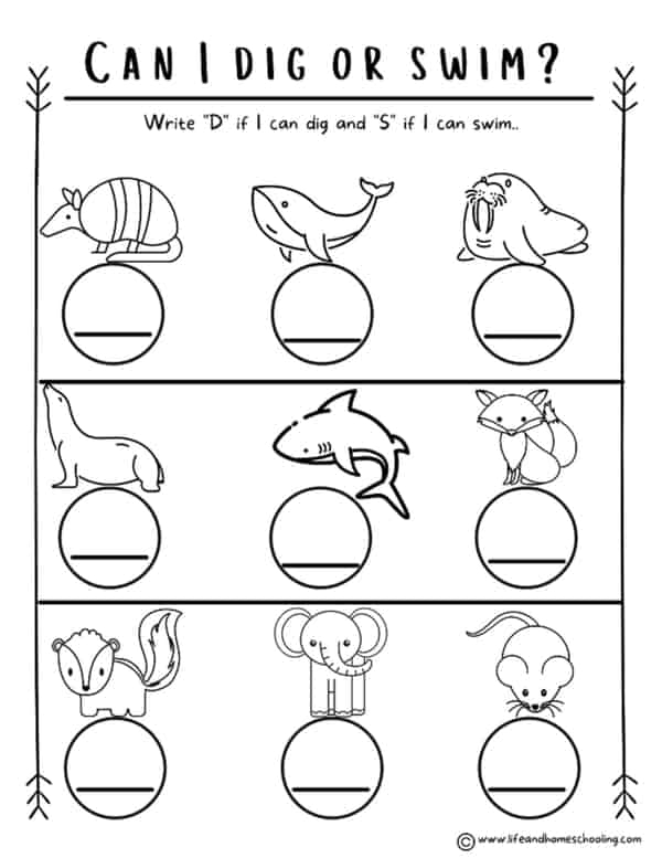 Preschool Kindergarten Science Animals Printable Worksheets