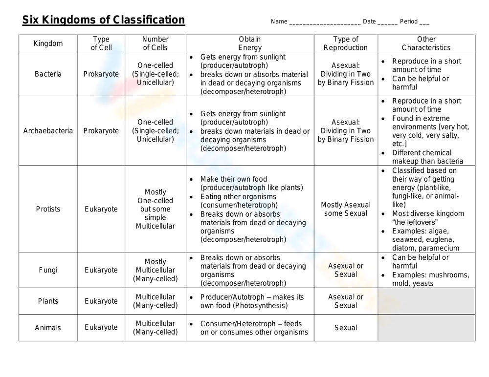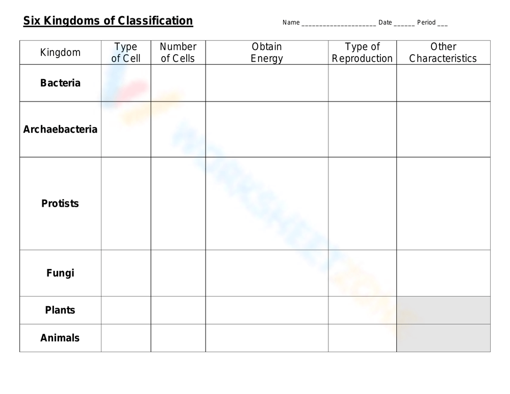 Kingdom Classification Worksheet