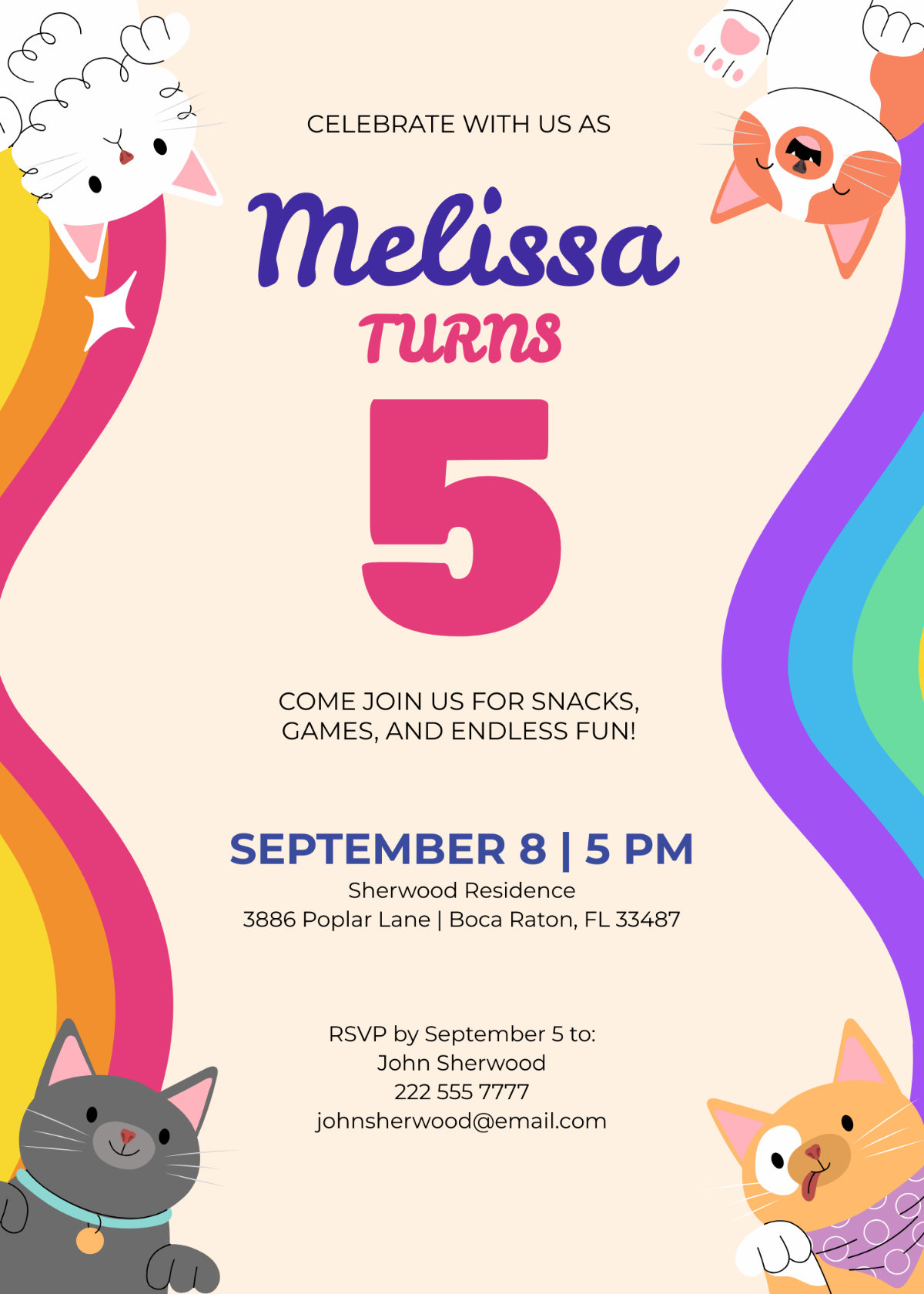 If you’re looking for a cute and customizable invitation template for your upcoming kitty party, you’ve come to the right place. Our free kitty invitation templates are perfect for any feline-themed event, whether it’s a birthday party, adoption celebration, or just a fun get-together with your fellow cat lovers.