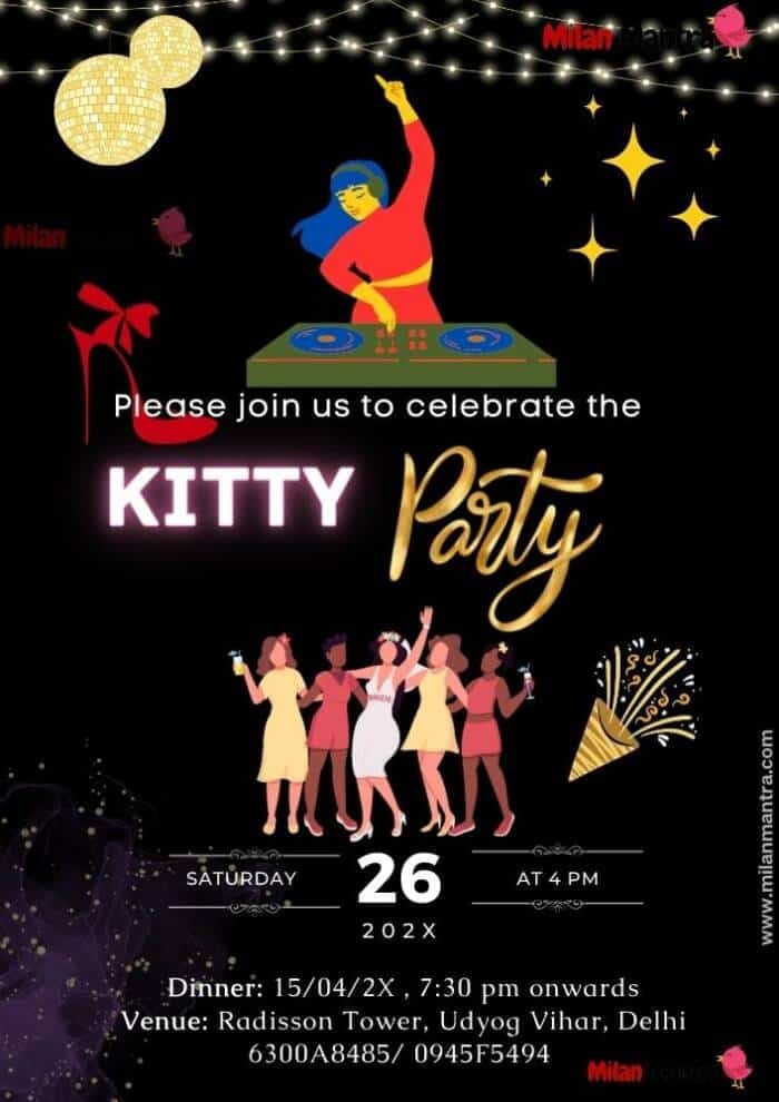 With our user-friendly and customizable template, you can create the perfect invitation in no time. So go ahead and start planning your kitty party today with our free invitation template. Your guests will be thrilled to receive such a beautiful and personalized invitation, and you’ll be sure to host an unforgettable event that everyone will enjoy.