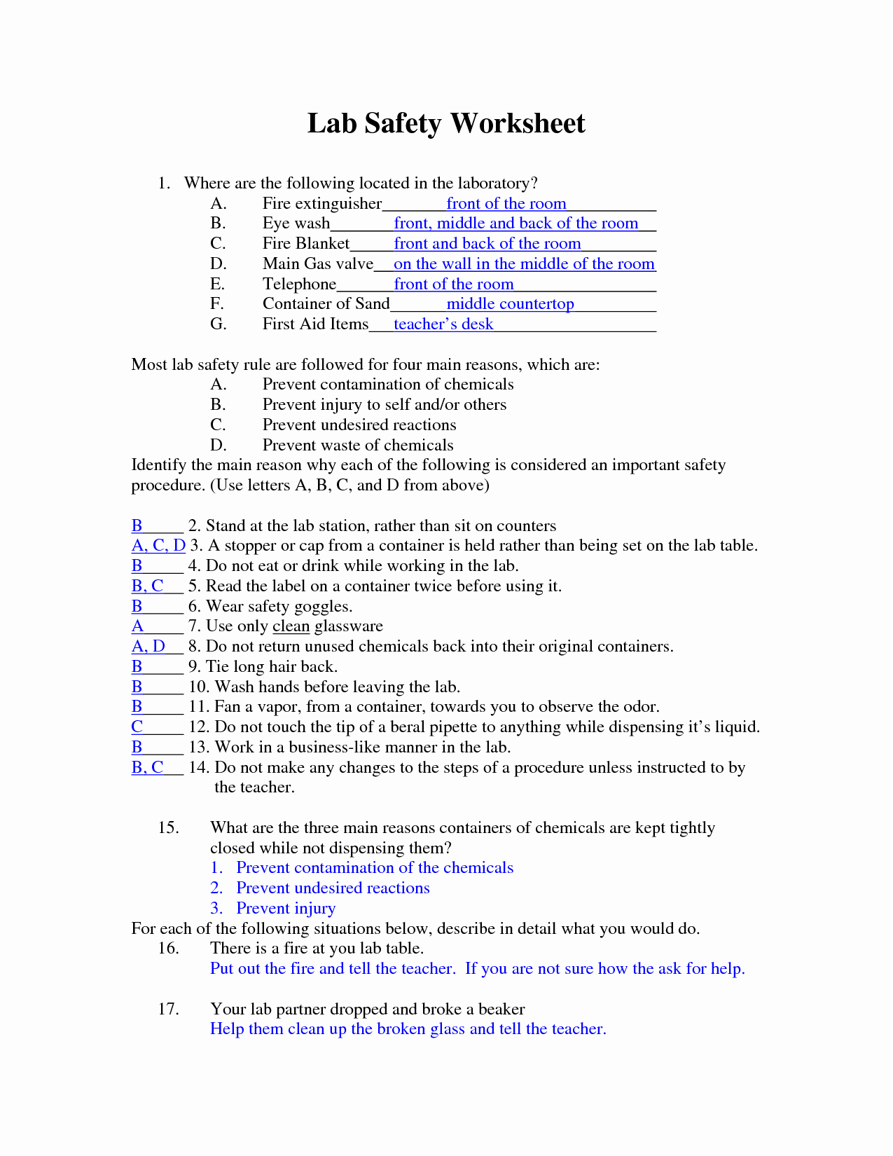 Free Lab Safety Worksheet Answers Download Free Lab Safety Worksheet