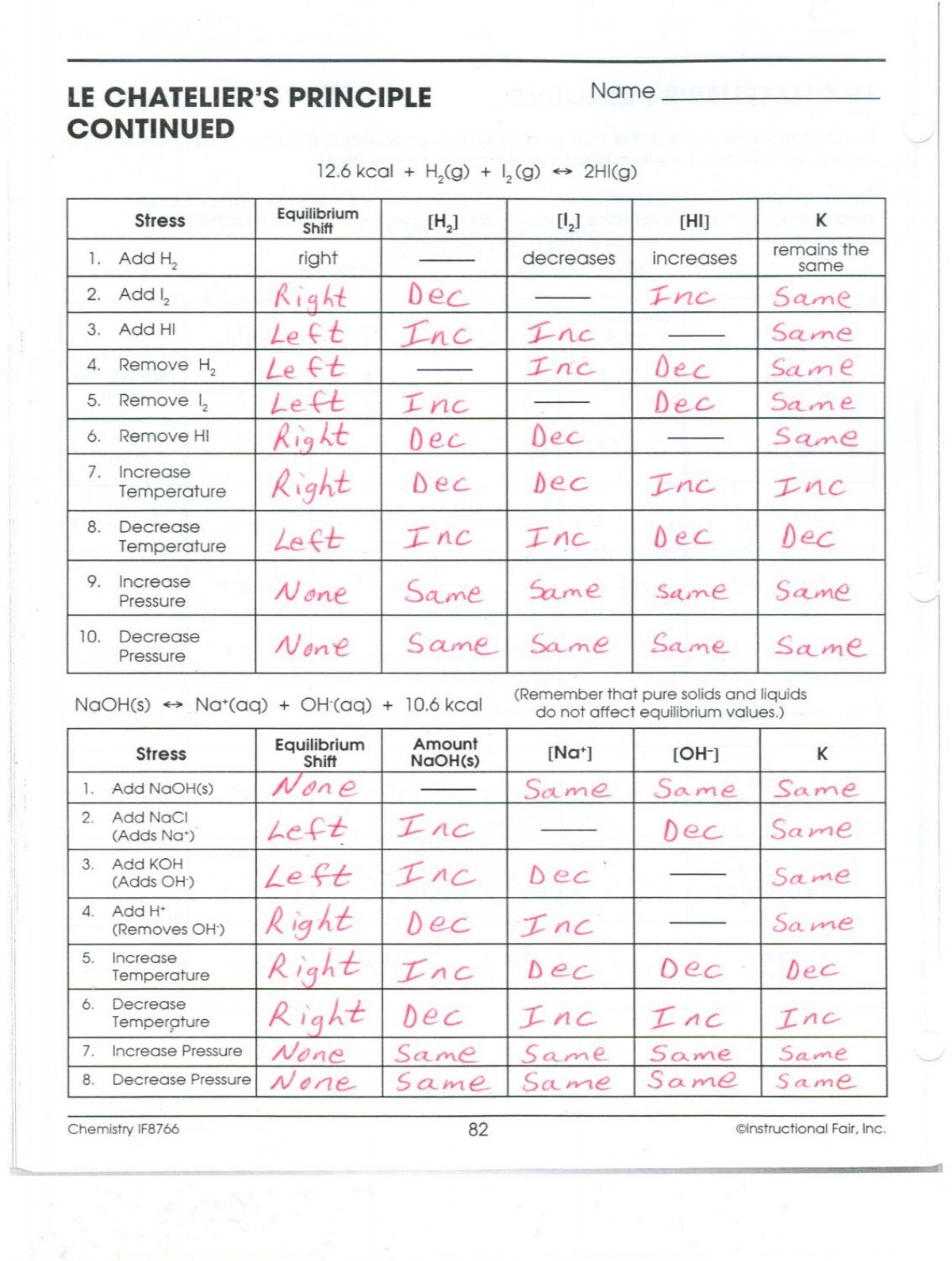 Le Chatelier S Principle Worksheet Answers Breadandhearth