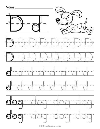 2. Trace the lowercase letter d: This worksheet focuses on the lowercase letter d. Children can trace the dotted letter and then write it on their own in the space provided.
