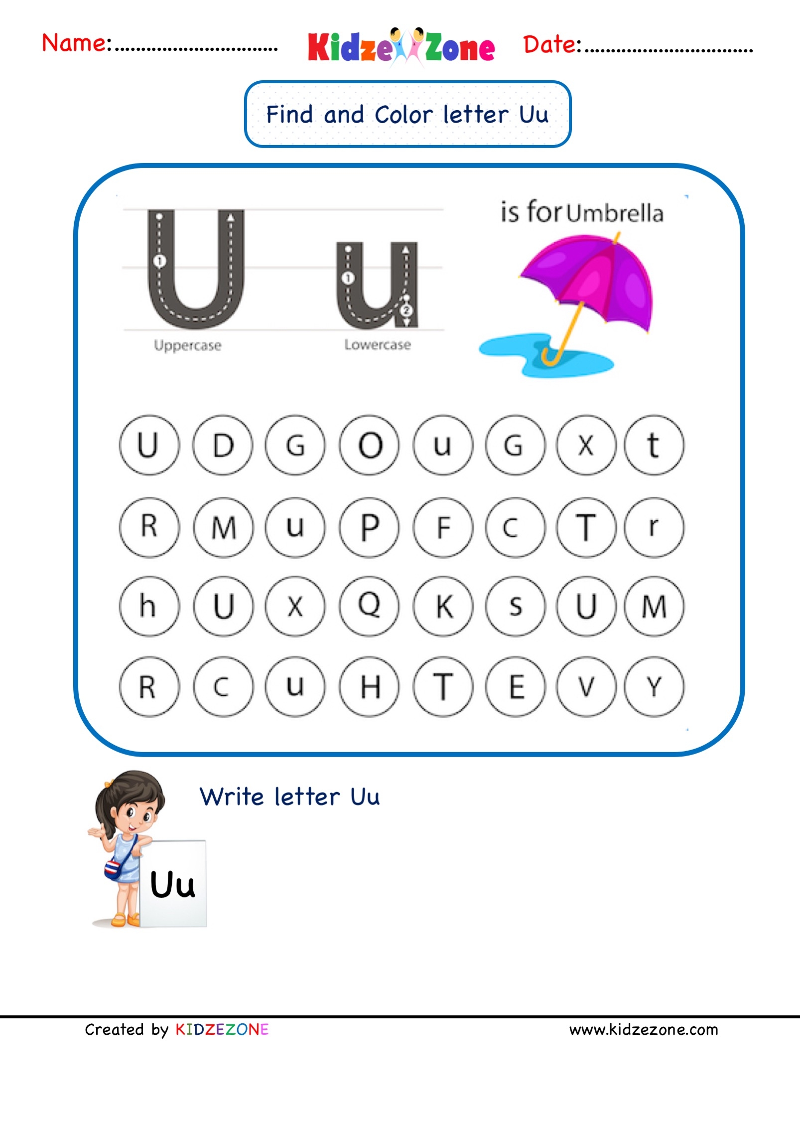 Kindergarten Letter U Worksheets Find And Color KidzeZone