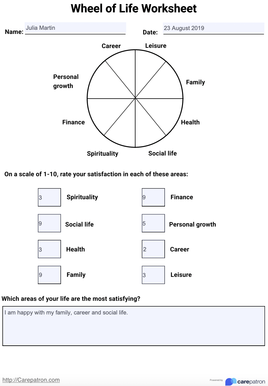 Life Wheel Worksheet