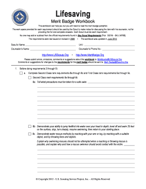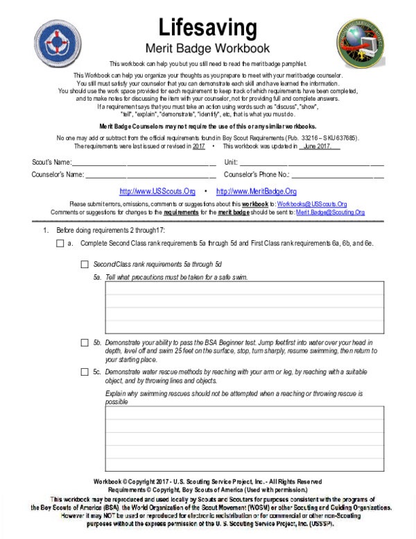 Lifesaving Merit Badge Workbook Fill Online Printable Fillable