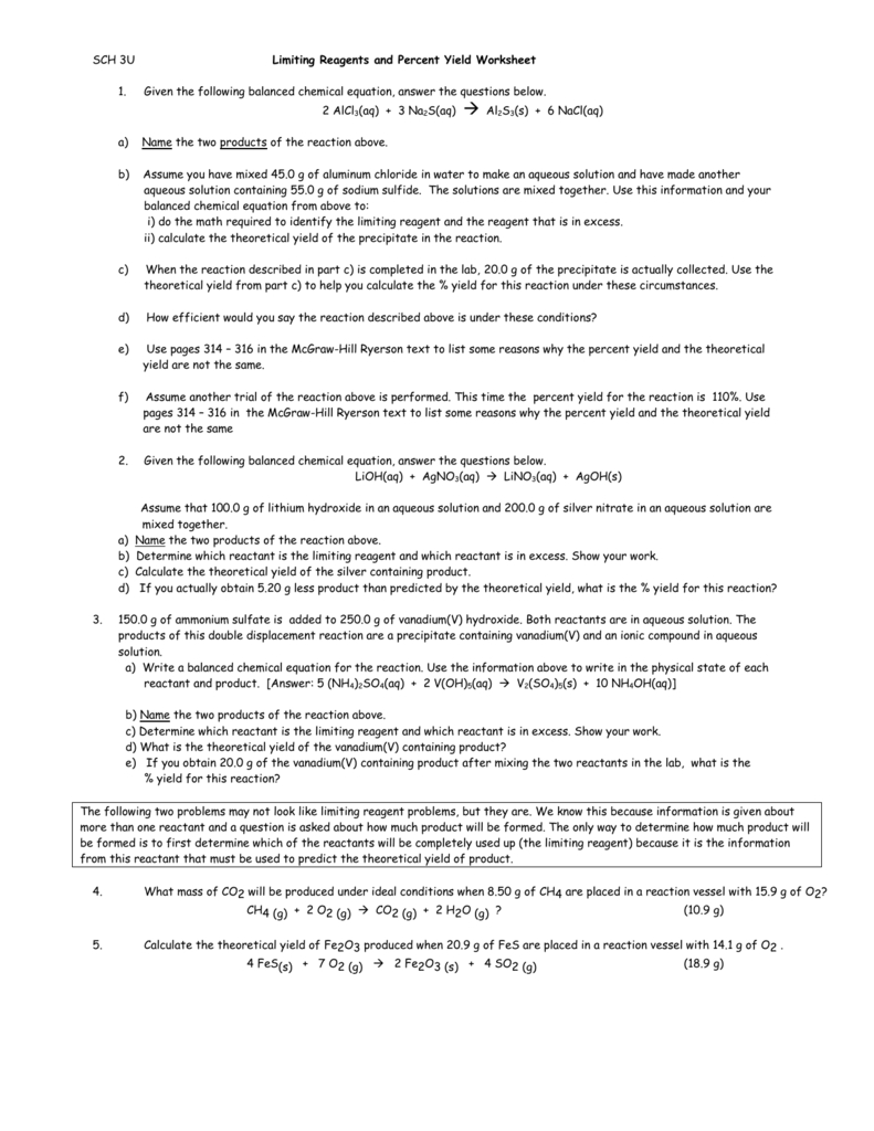 Limiting Reagent And Percent Yield Worksheet Download and Print limiting reagent and percent yield worksheet Listed below