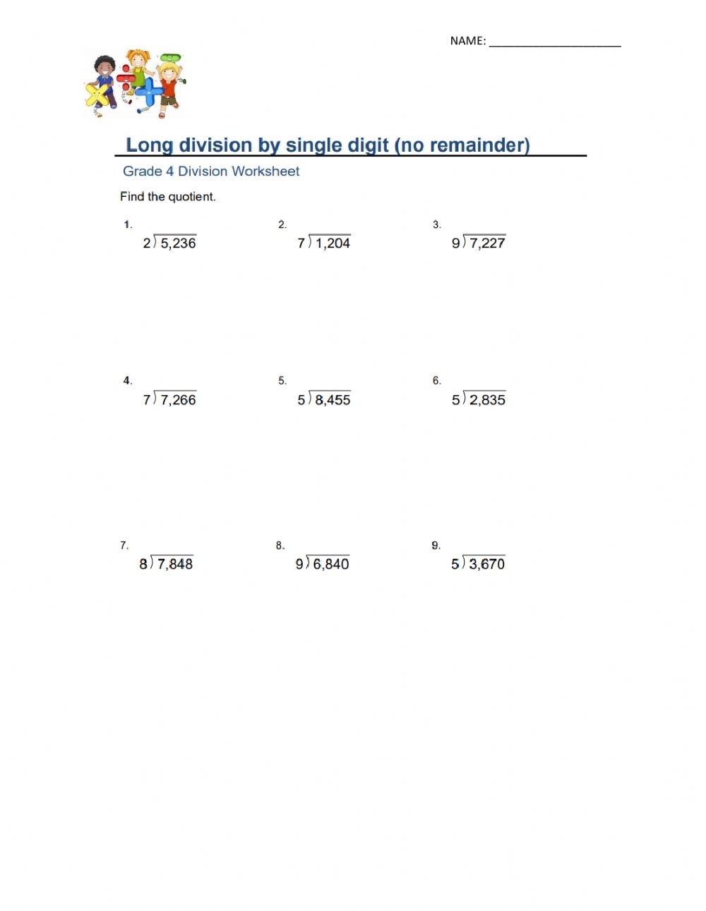 Long Division No Remainders Worksheet Download and Print long division no remainders worksheet Listed below