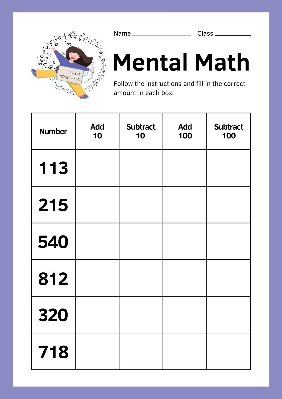 Mental Maths Worksheets Practice Papers Test Questions Class 2 Kids
