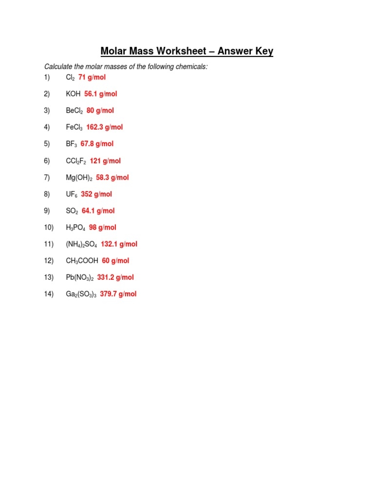Download and Print molar mass worksheet answers Listed below