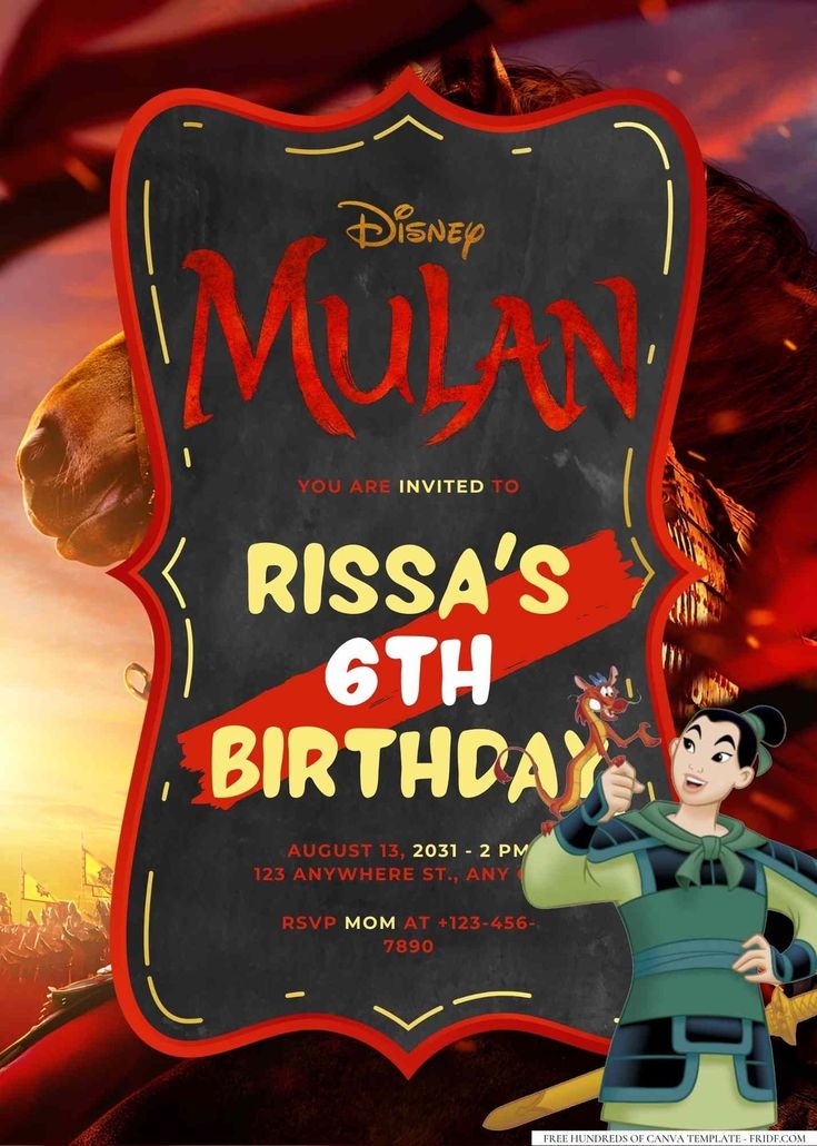 Don’t miss out on the opportunity to create beautiful and unique invitations for your Mulan-themed party. Download our Mulan invitation template now and make your event truly unforgettable!