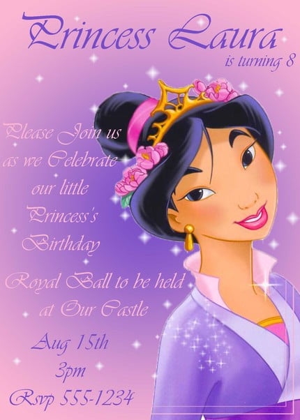 8 Princess Mulan Birthday Invitation Templates Birthday Invitation