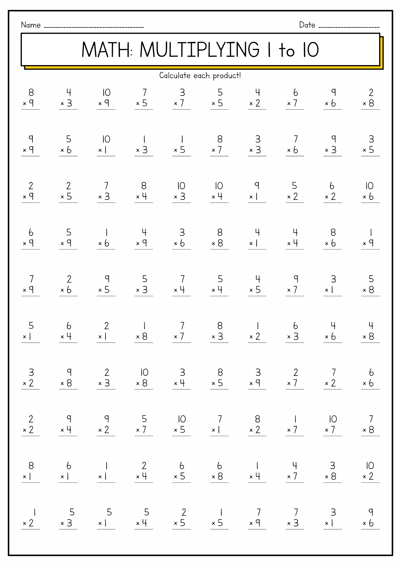 Multiplication Worksheets By 1