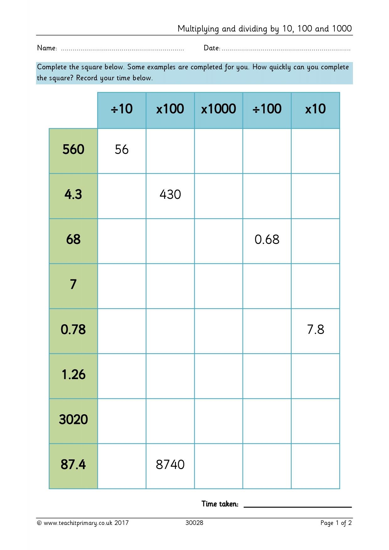 Multiply By 10 Worksheet