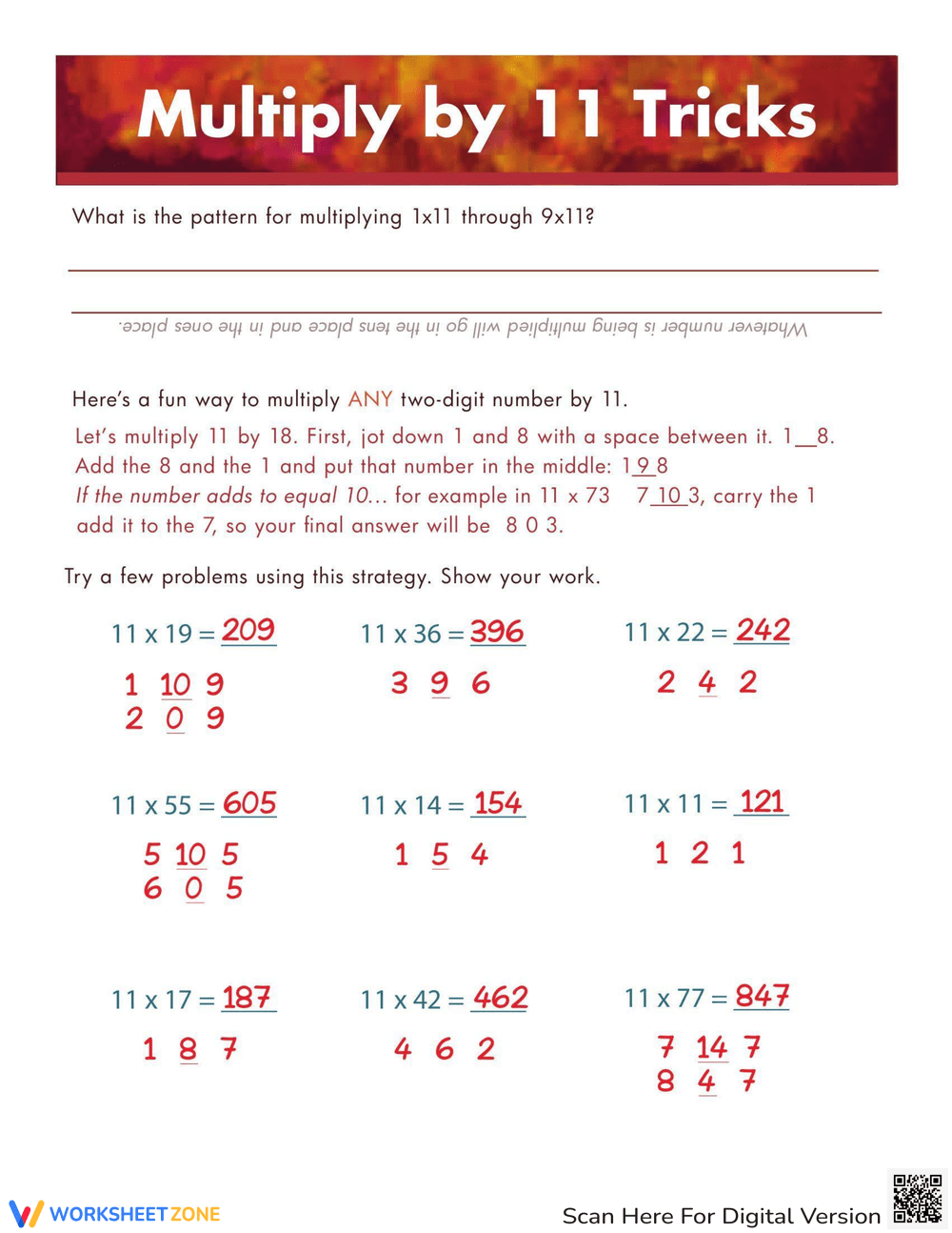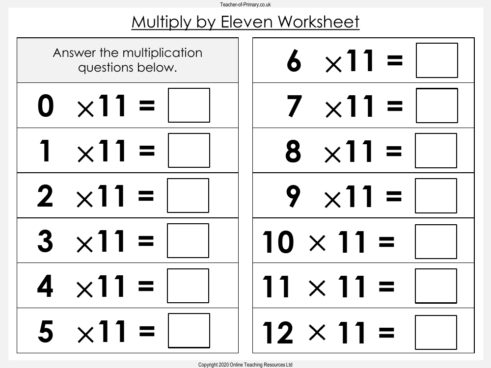 Multiply By 11 Worksheet