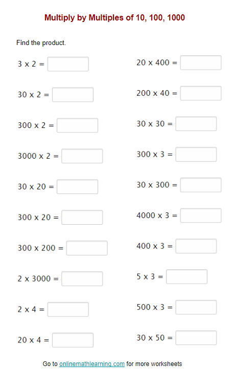 Multiplying 10s Worksheets Printable Online Worksheets Library