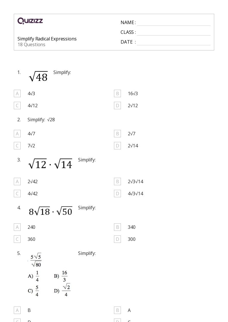 Download and Print multiplying radicals worksheet Listed below