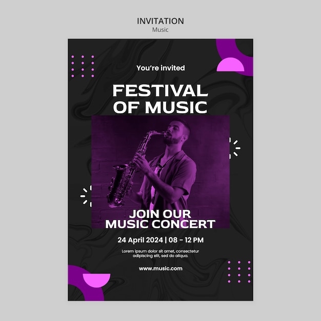Our music note invitation template features a stylish design with elegant music notes scattered across the background. The template is fully customizable, allowing you to add your event details and personalize it according to your preferences. Whether you’re hosting a concert, recital, or music-themed party, this template is sure to make a lasting impression on your guests.