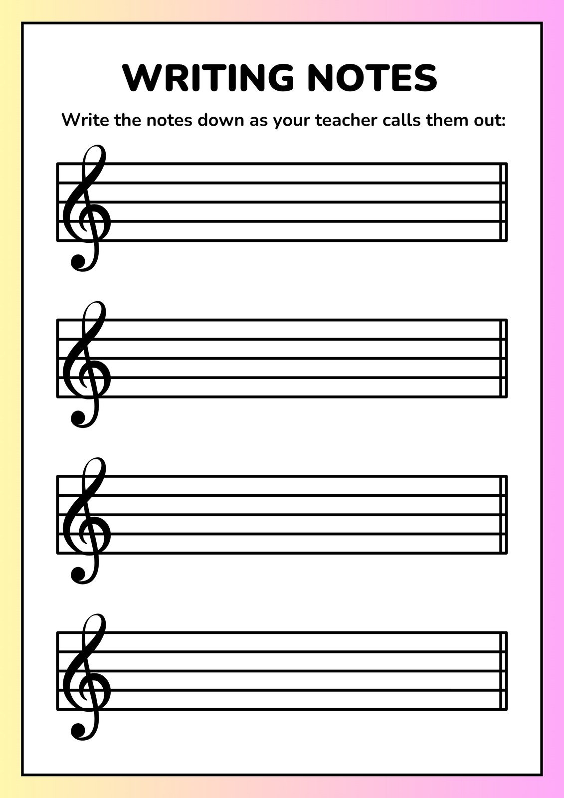 music notes worksheets