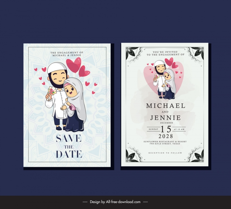 Some popular themes for Muslim wedding invitations include arabesque patterns, Islamic geometric designs, and elegant gold and white color schemes. You can also choose from different formats, such as digital invitations that can be sent via email or social media, or printable templates that can be used for more formal invites.