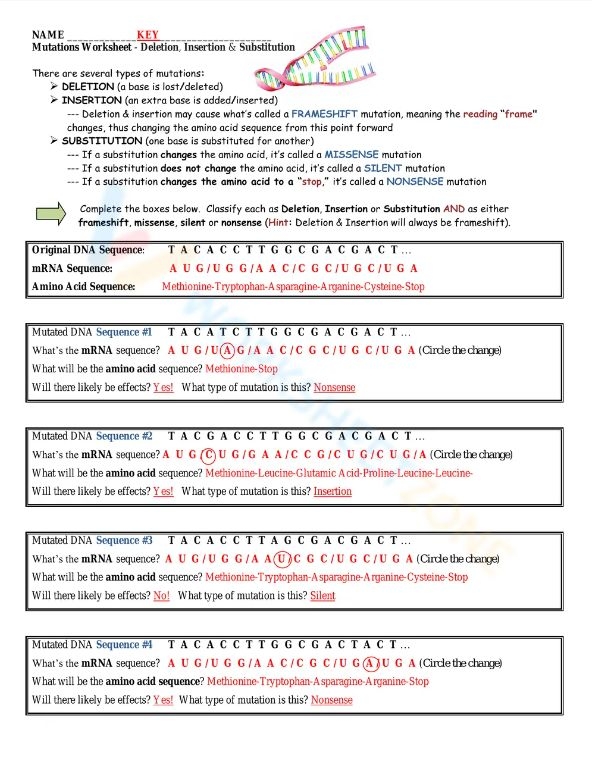 Download and Print mutation worksheet Listed below