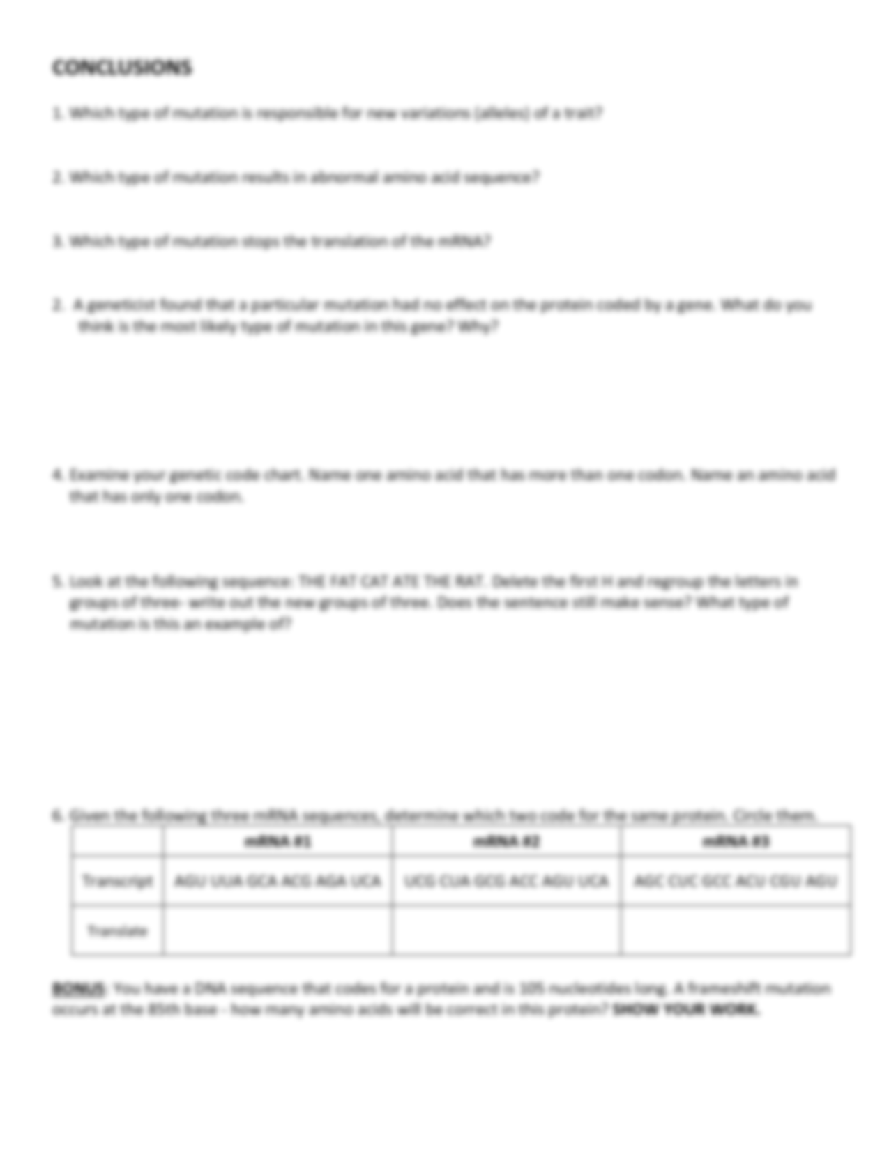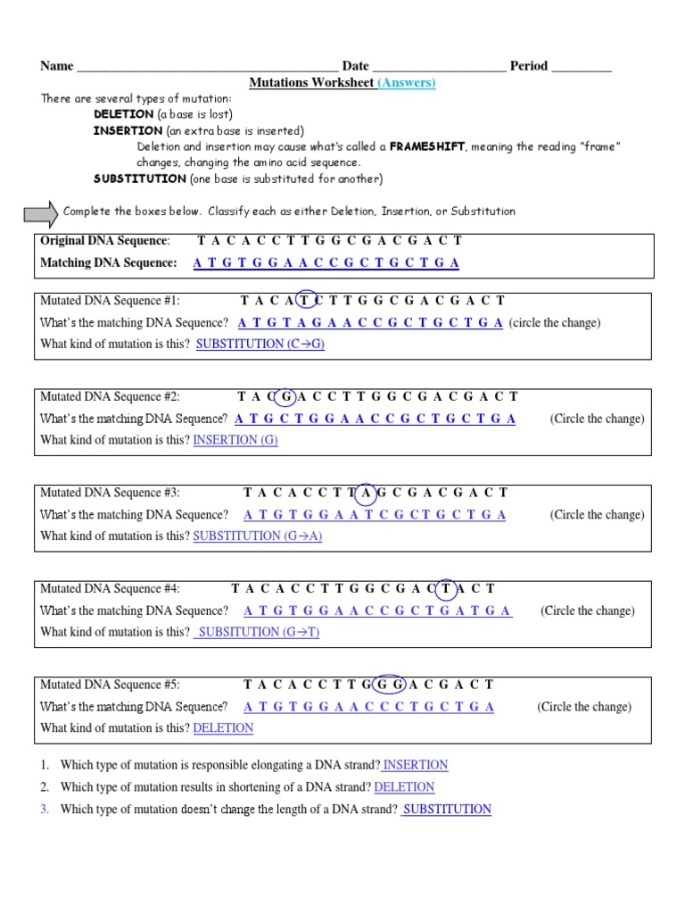 Mutation Worksheet
