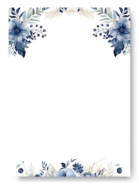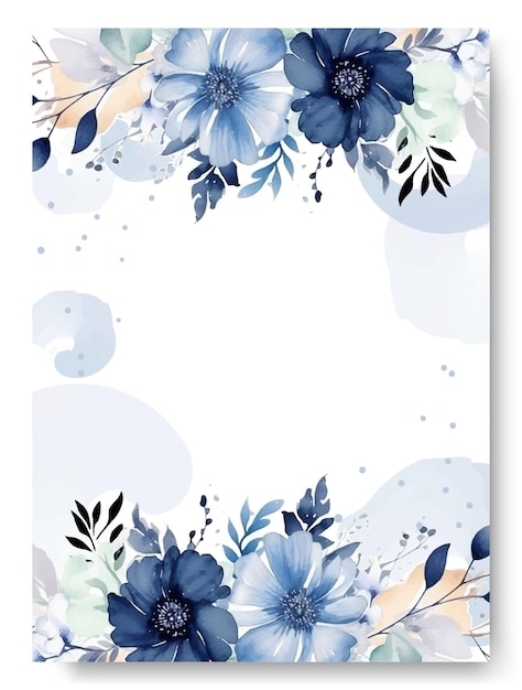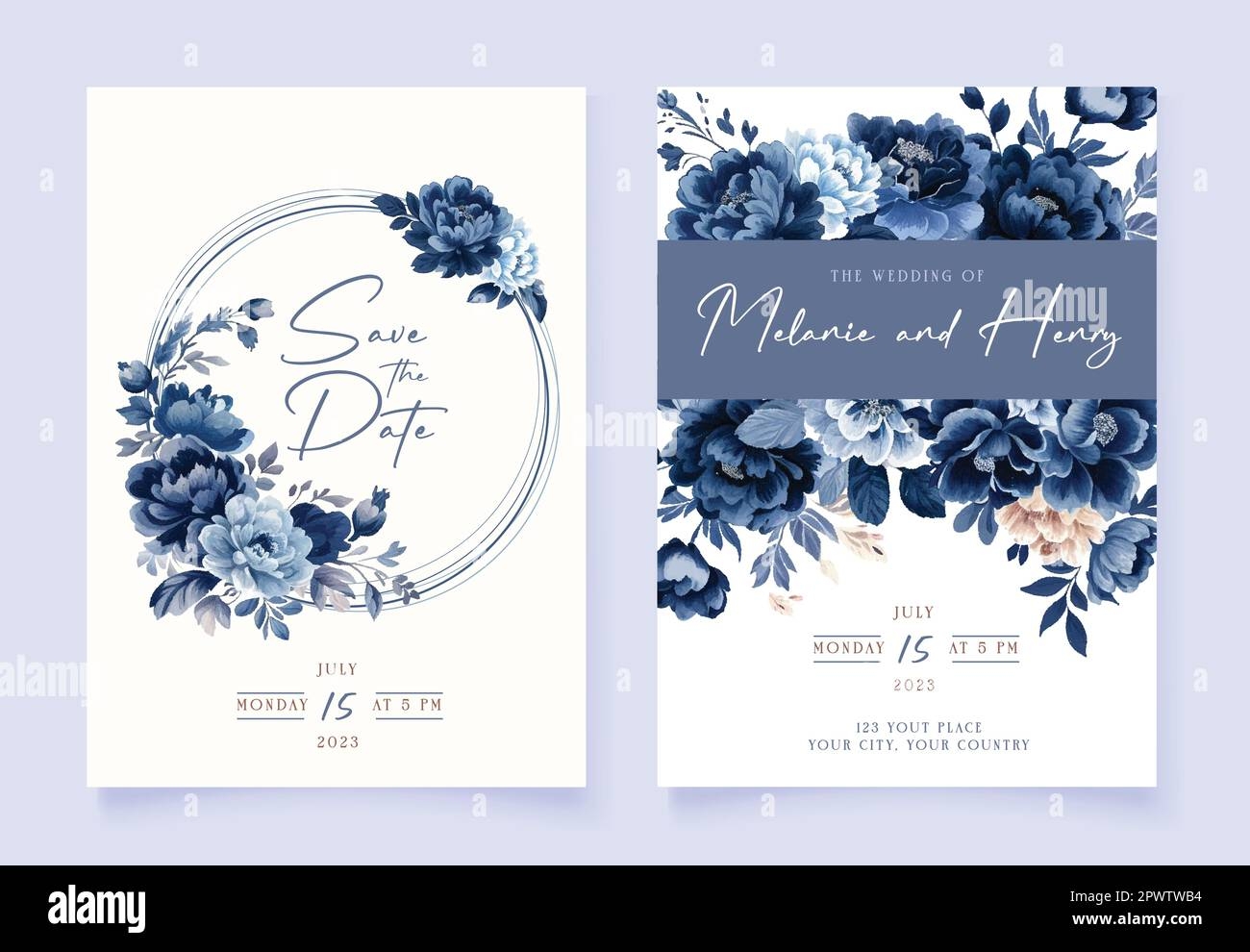 Watercolor Navy Blue Floral Wedding Invitation Cards Template Stock