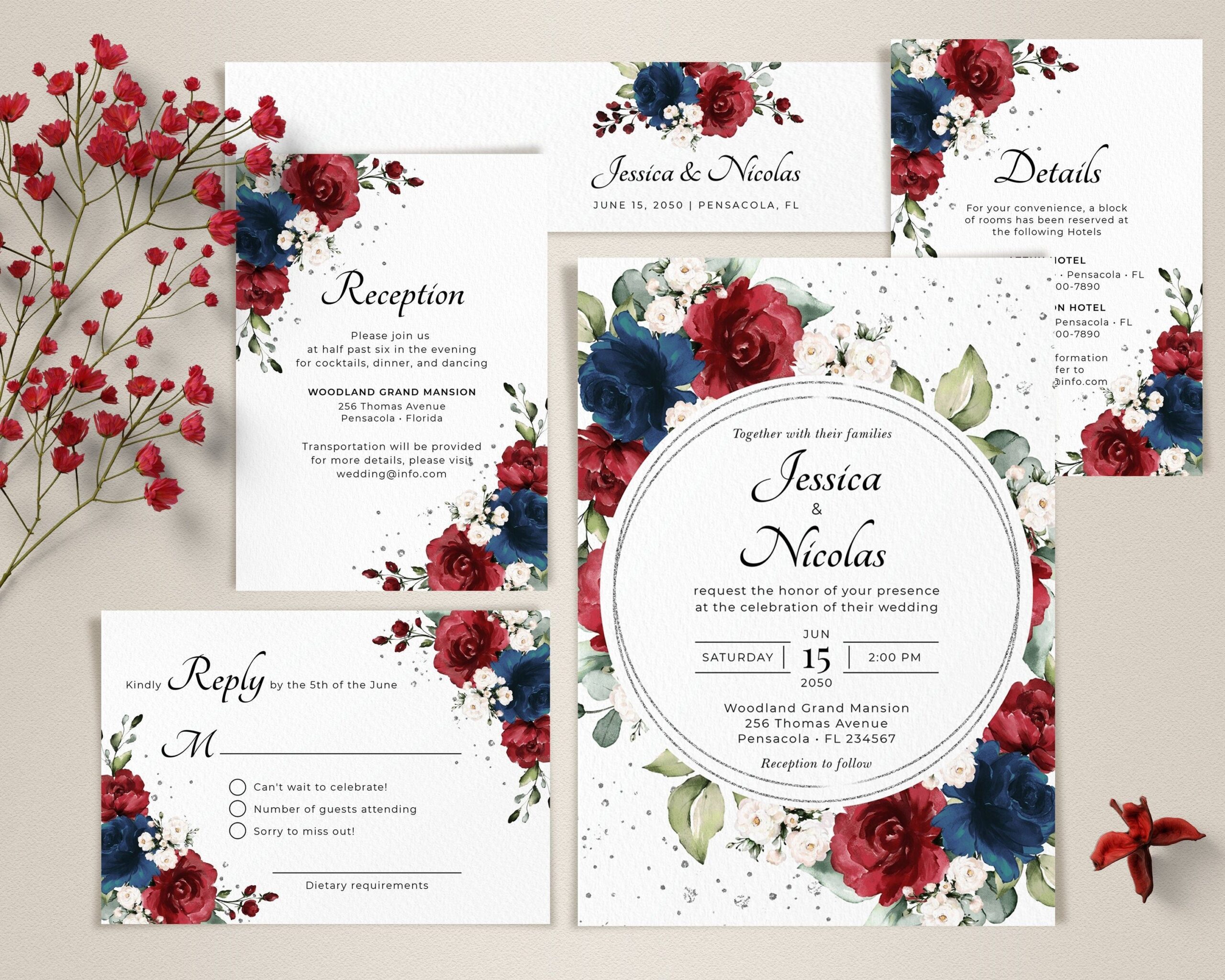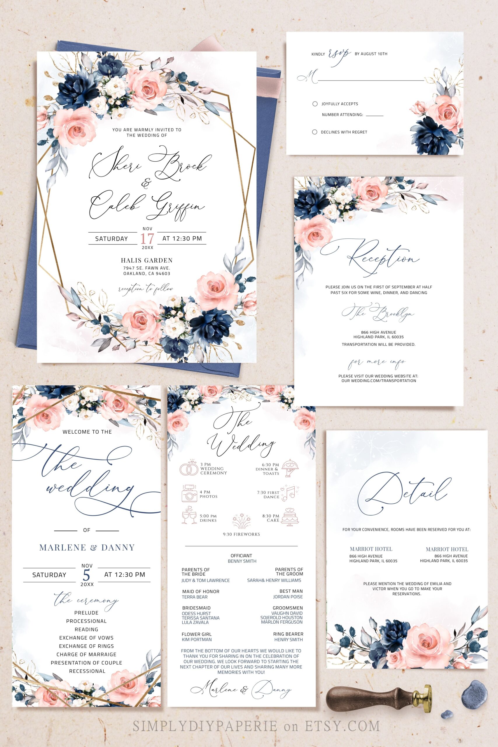 When choosing navy blue wedding invitation templates, be sure to consider the quality of the design and printing. Opt for templates that are professionally designed and can be easily printed on high-quality cardstock for a luxurious finish. You can also add embellishments such as ribbon, wax seals, or glitter for an extra touch of elegance.