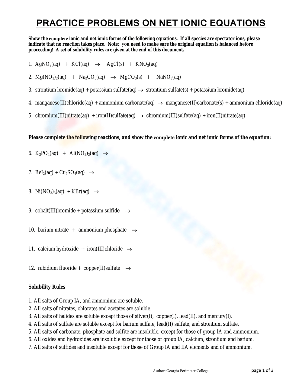 PRACTICE PROBLEMS ON NET IONIC EQUATIONS Worksheet Worksheets Library