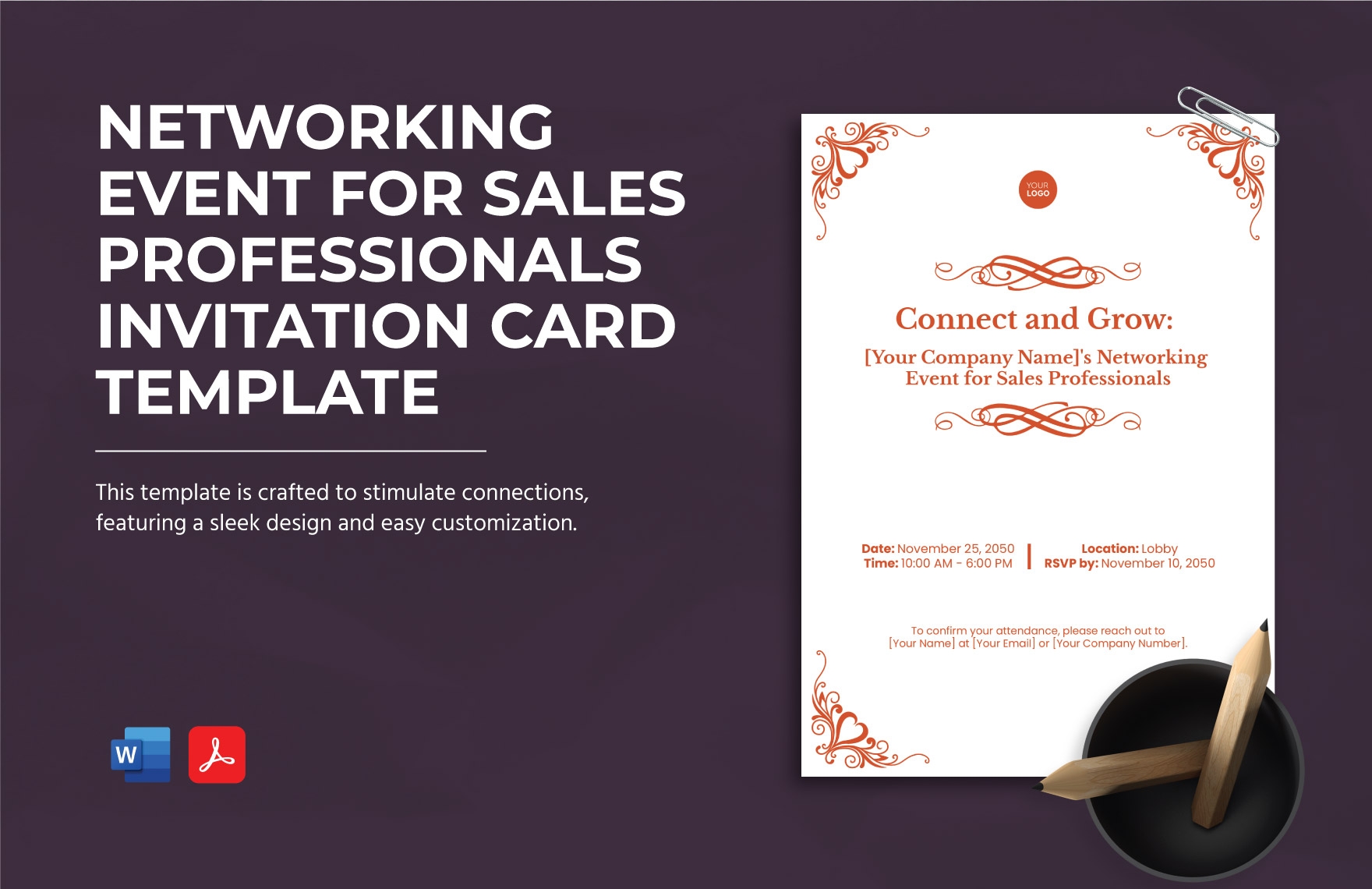 Networking Event For Sales Professionals Invitation Card Template In