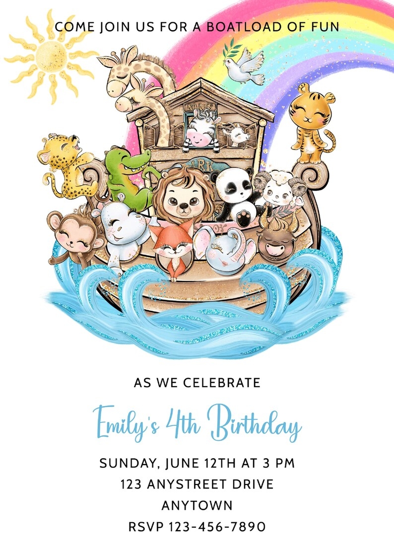 Noah’s Ark is a popular theme for baby showers, birthday parties, and other events. If you’re planning a celebration with this adorable theme, you’ll want to send out invitations that match the whimsical and charming feel of the story. Luckily, there are plenty of Noah’s Ark invitation templates available online that you can customize to suit your event.