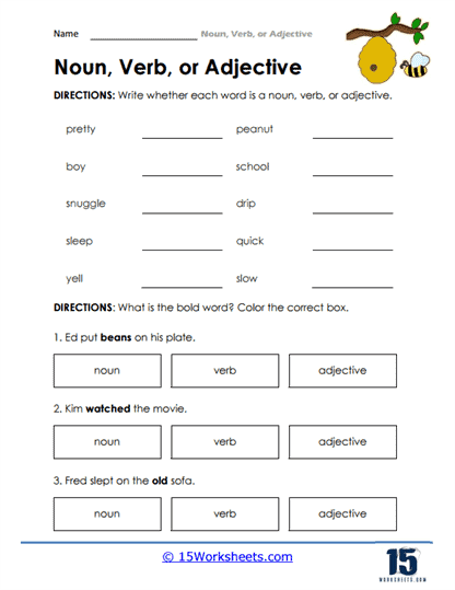 Noun And Verb Worksheet