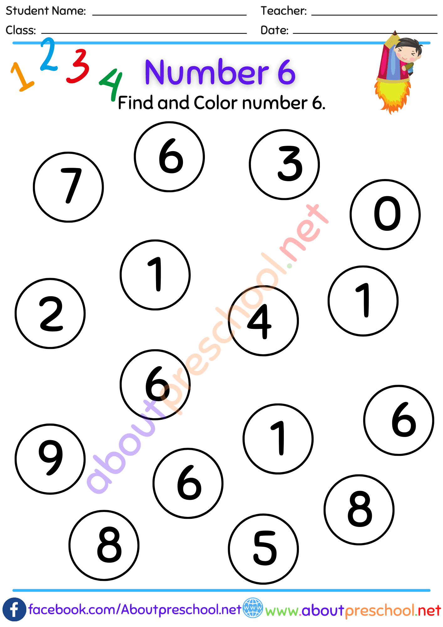 Number 6 Worksheet Preschool