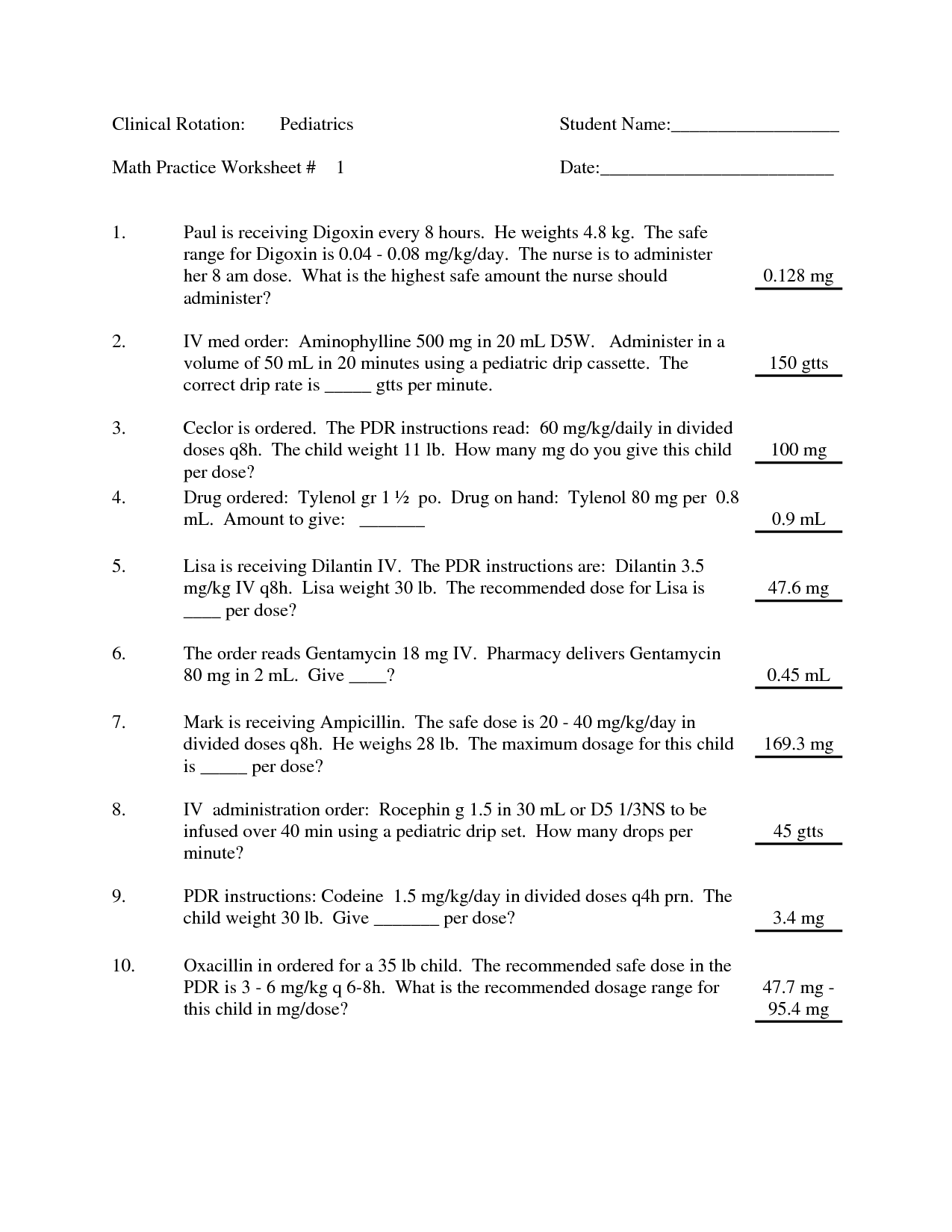 Nursing Math Practice Worksheets With Answers Download and Print nursing math practice worksheets with answers Listed below