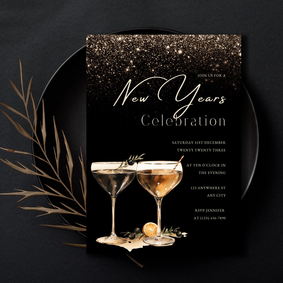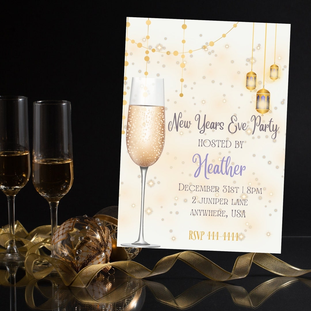 2. Champagne Toast: Get your guests excited for a night of bubbly and cheers with this champagne-themed invite template. The elegant design and sparkling champagne glasses will make your invite stand out and get everyone in the mood for a toast to the new year.