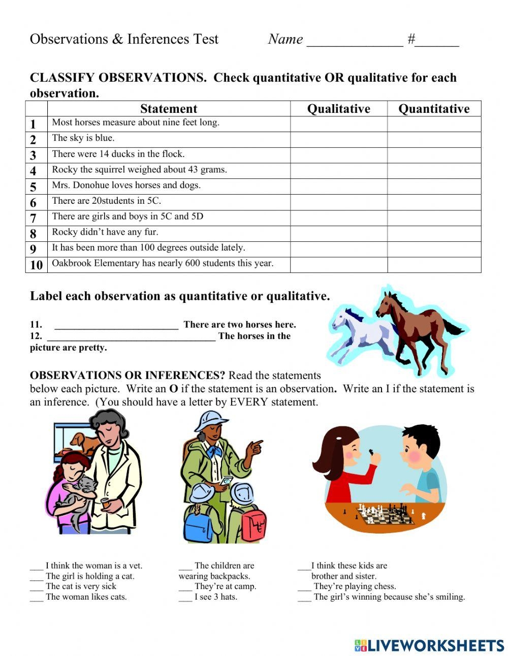 Examples of Observation vs Inference Worksheets