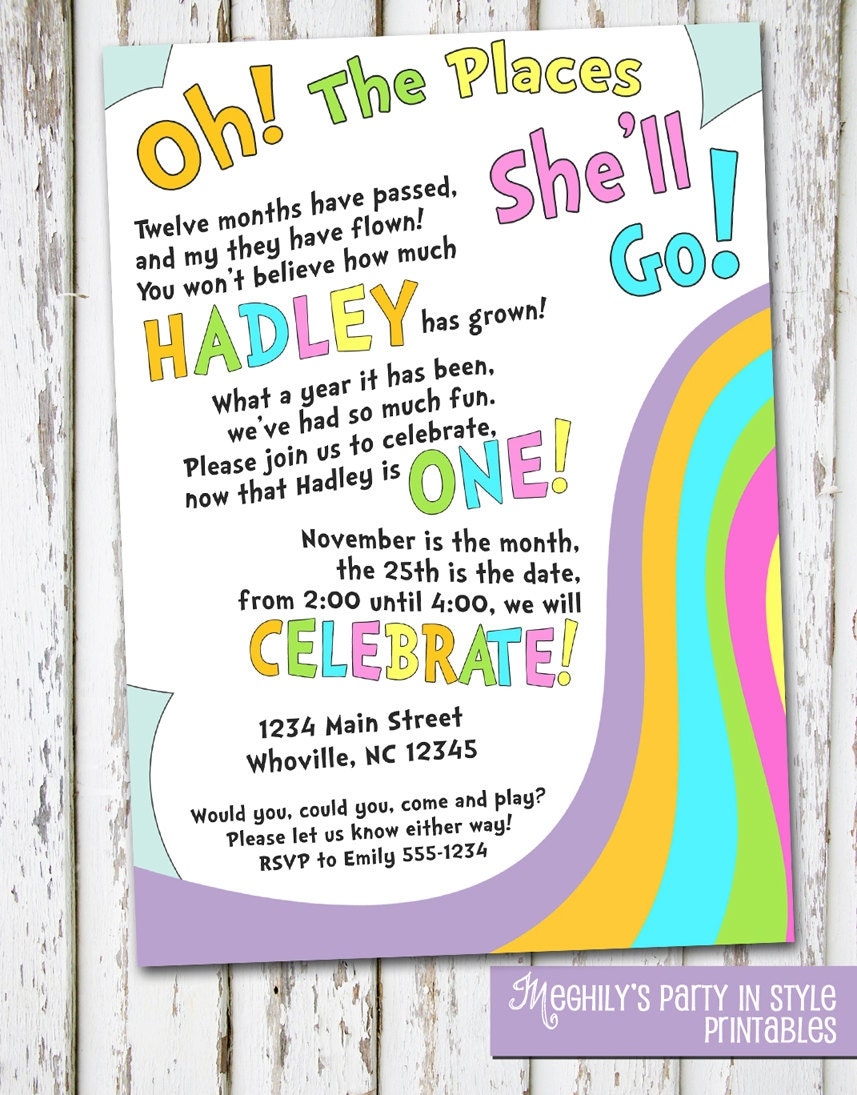 Dr. Seuss’s classic book “Oh The Places You’ll Go” has long been a favorite for its message of hope, perseverance, and exploration. Now, you can bring that same spirit to your event with a beautifully designed invitation that captures the essence of the book.