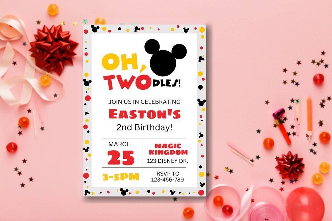 Are you planning a birthday party for your toddler and looking for the perfect invitation? Look no further than the Oh Twodles birthday invitation template! This adorable template features Mickey Mouse and Minnie Mouse in a fun and colorful design that is sure to delight your little one and their guests. Best of all, it’s free to download and customize to suit your party theme.