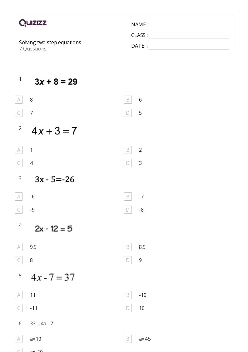 Equations are an essential part of mathematics, and understanding how to solve them is crucial for students to excel in their math studies. One step and two step equations are fundamental concepts that students need to grasp to move on to more advanced algebraic topics. To help students practice and master these equations, teachers often provide worksheets that offer a variety of problems to solve.