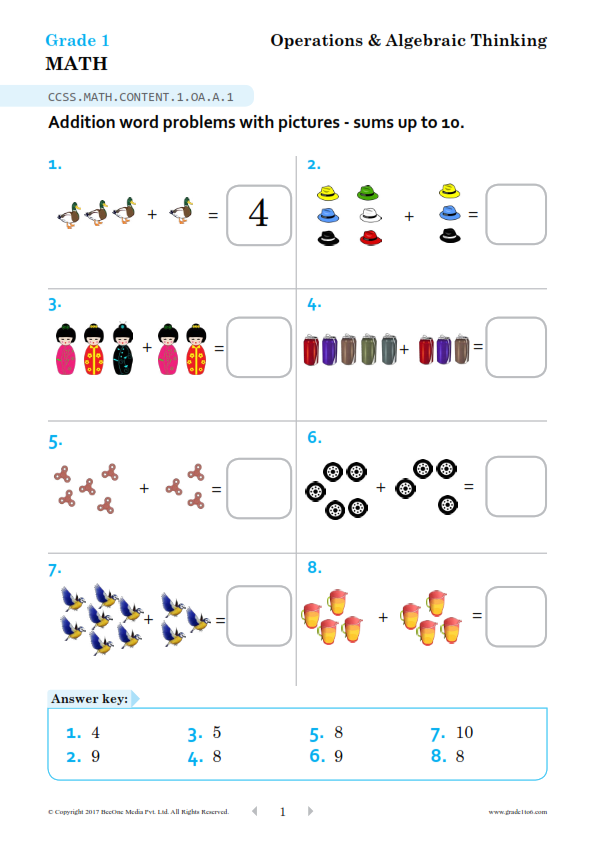 Another important focus of these worksheets is problem-solving. Grade 1 students are introduced to word problems that require them to apply their addition and subtraction skills in real-life situations. These problems help students develop their critical thinking and reasoning skills while also reinforcing their understanding of basic mathematical operations.