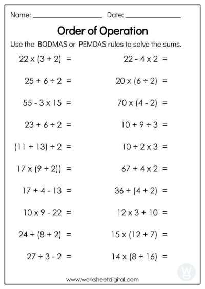 In conclusion, order of operation worksheet PDF is a valuable resource for teachers and students alike. These worksheets provide a structured and practical way for students to practice and reinforce their understanding of the order of operations. By using these worksheets, students can develop their problem-solving skills and build a strong foundation in mathematics.