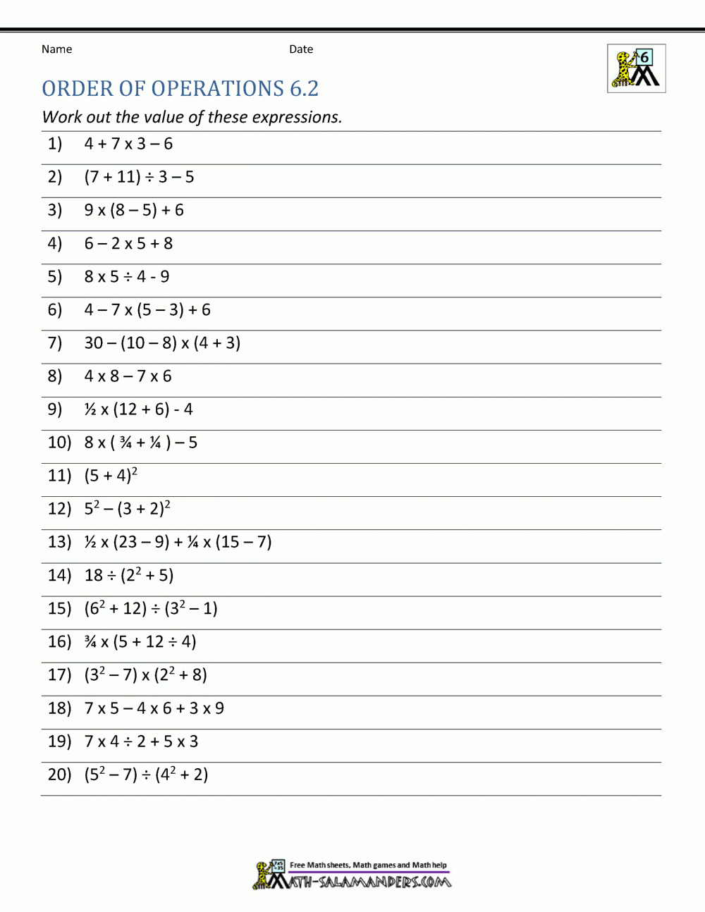 Order of operations lays the foundation for solving mathematical expressions correctly, and it is essential for students to grasp this concept early on. To help students practice and reinforce their understanding of the order of operations, teachers often provide them with worksheets that contain a variety of mathematical expressions to solve.