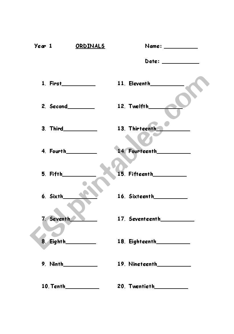 A worksheet on ordinals can help students practice identifying and using these special numbers. By completing exercises on ordinals, children can strengthen their understanding of numerical order and improve their math skills. These worksheets can be a fun and interactive way for students to engage with the concept of ordinals in a hands-on manner.