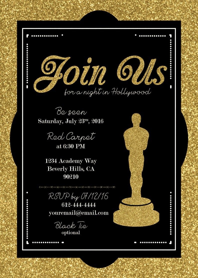 When it comes to creating the perfect Oscars party invitation, you’ll want to make sure it reflects the glitz and glamour of the event. One option is to use a template that features a gold and black color scheme, reminiscent of the iconic Oscar statue. You can include details such as the date, time, location, and dress code to ensure your guests are prepared for an evening of fun and excitement.
