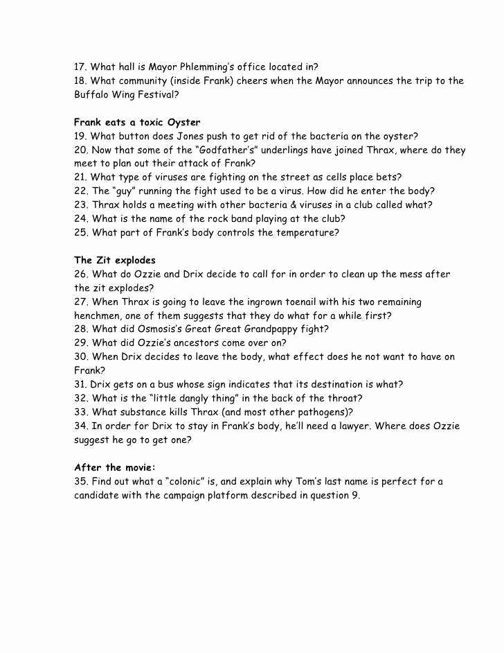 By engaging with the Osmosis Jones movie worksheet, students can deepen their understanding of biology and human anatomy in a fun and interactive way. The combination of entertainment and education in the film makes it a valuable resource for teachers looking to inspire their students to learn more about the wonders of the human body.