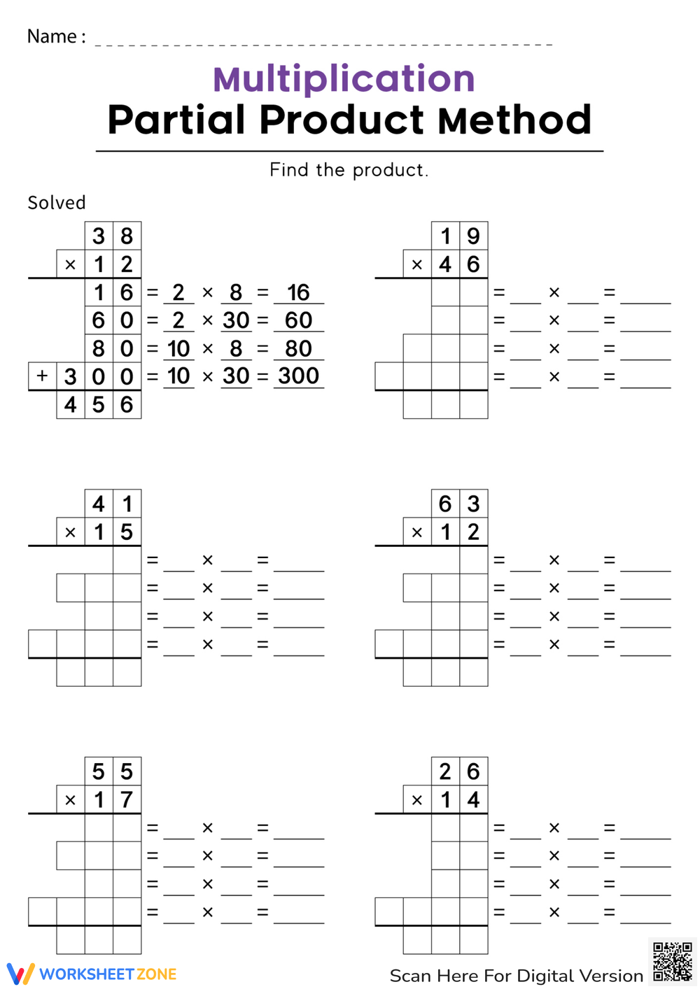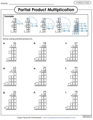 Partial Product Multiplication Worksheet