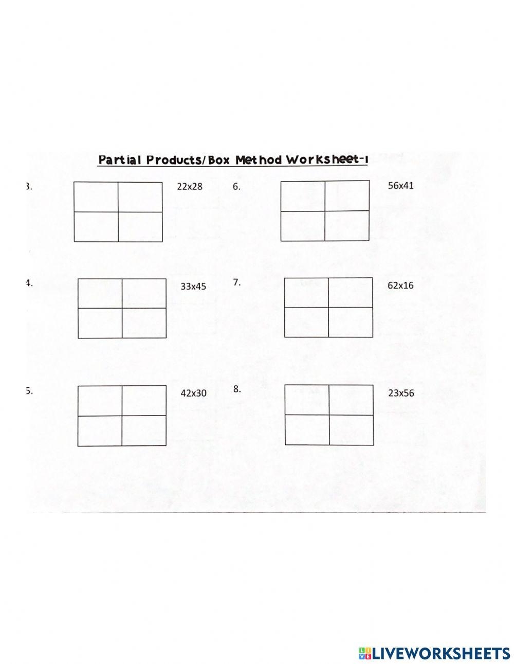 partial product multiplication worksheet