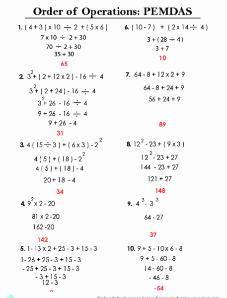 PEMDAS worksheets offer several benefits for 6th graders. Firstly, they help students develop a deeper understanding of the order of operations rules and how they apply to different types of mathematical problems. By practicing with a variety of expressions, students can become more proficient in applying PEMDAS correctly.
